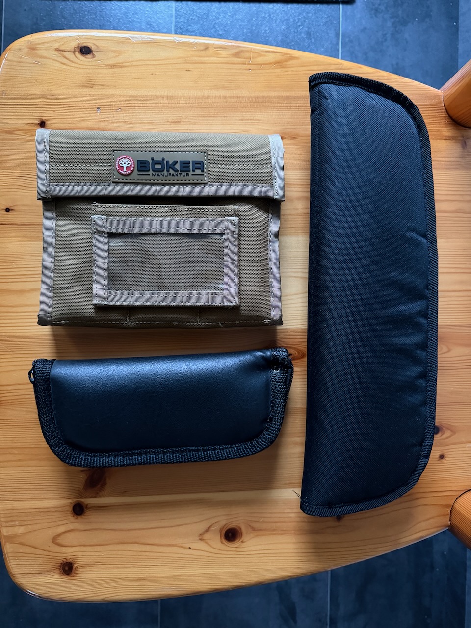 zum Verkauf steht eine Böker Messertasche und 2 Pouches.