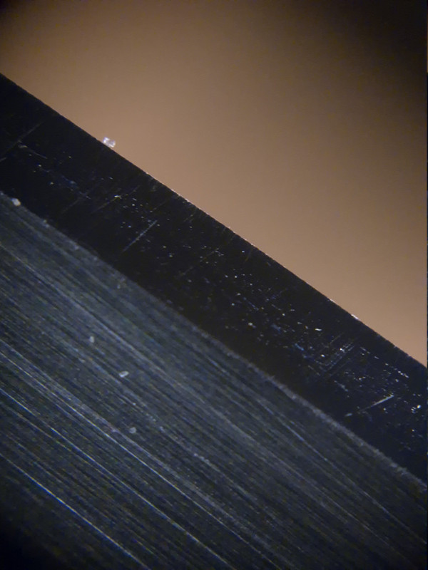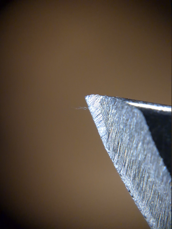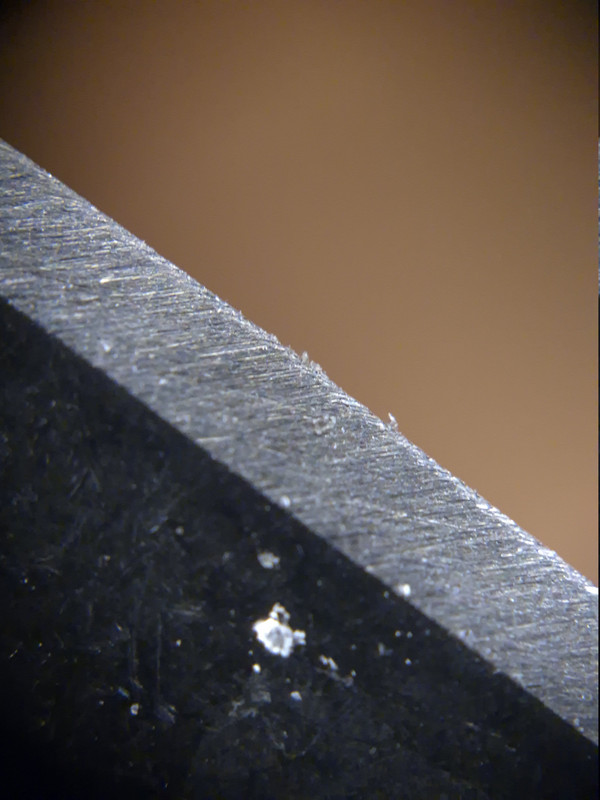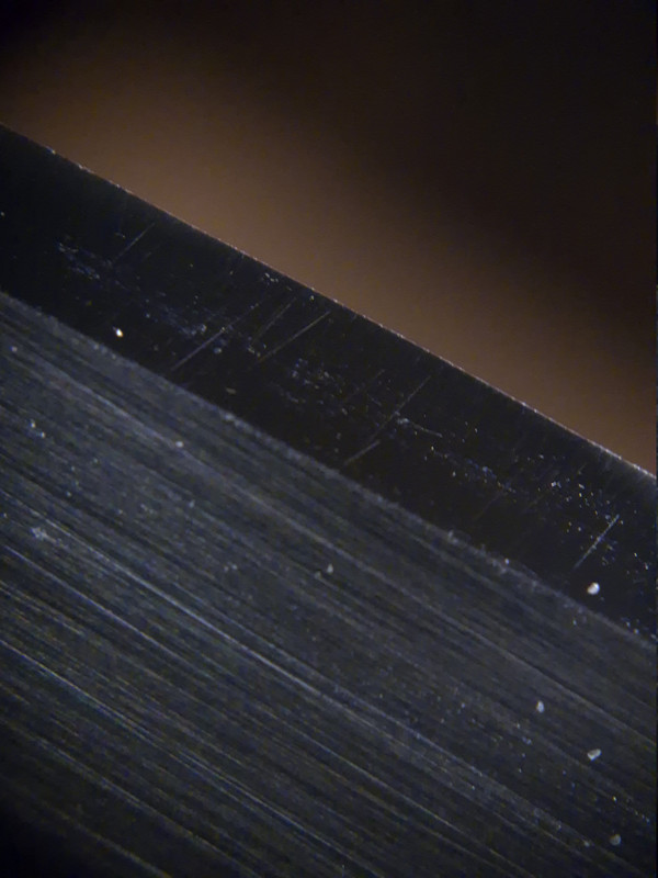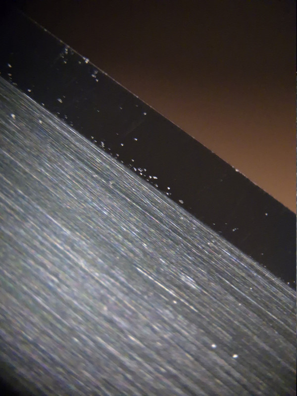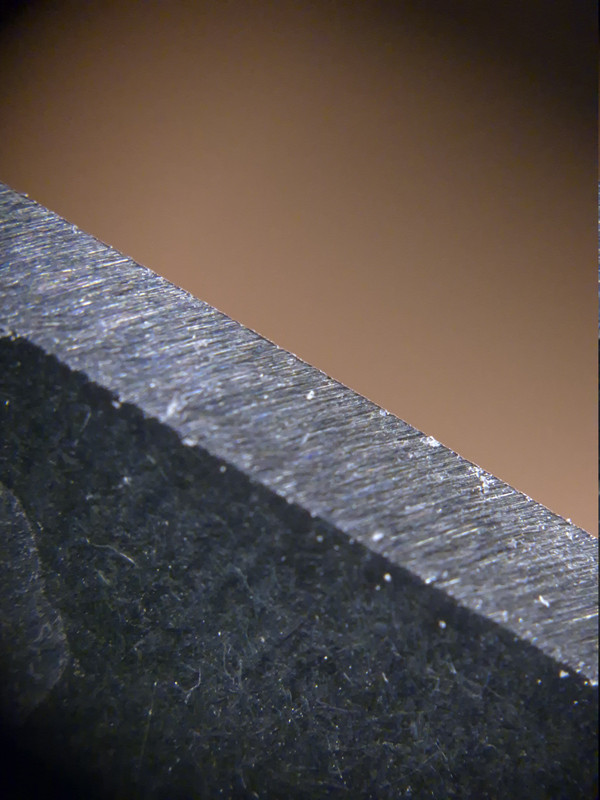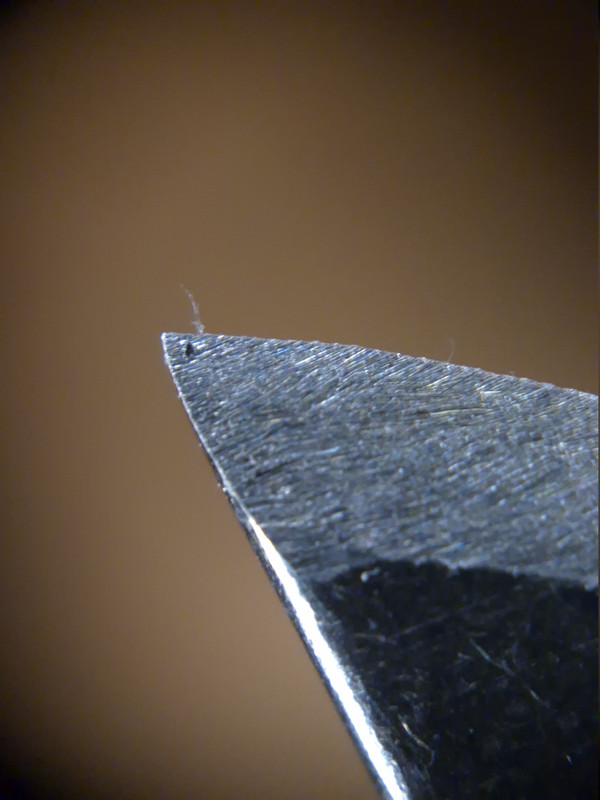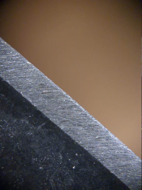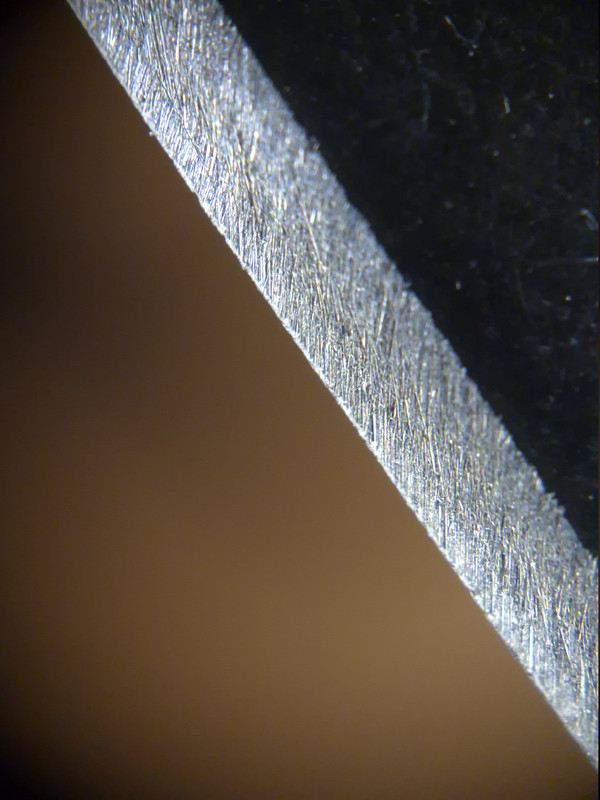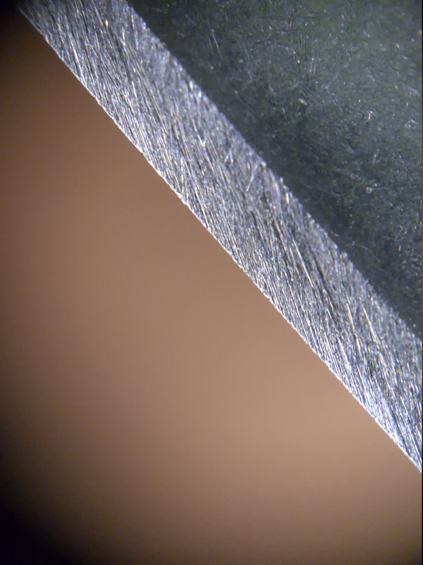 Auf den Bildern sind zwei verschiende Klingen zu sehen, wobei die zweite Schneide bis zu einem Shapton 12.000 geschliffen bzw. poliert wurde.