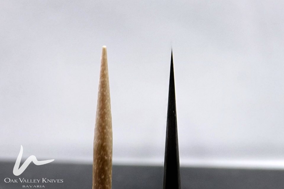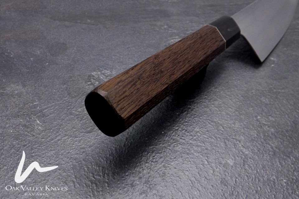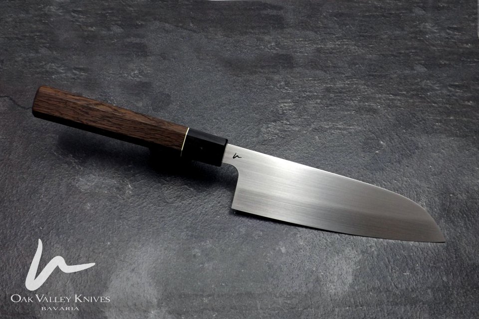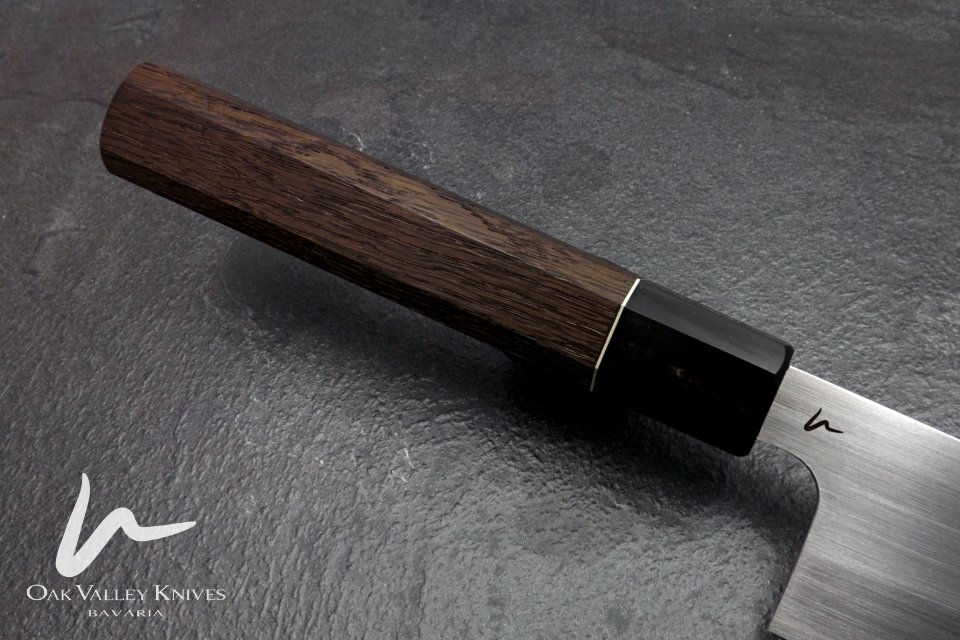 dieses Messer liegt mir besonders am Herzen. Es entstand für einen meiner besten Spezl und seine Frau. Die einzige Vorgabe war Mooreiche, als Griffmaterial. Da ich weiß, dass beide dieses Messer zu schätzen wissen und gut darauf acht geben, konnte ich es auch richtig schön dünn ausschleifen.