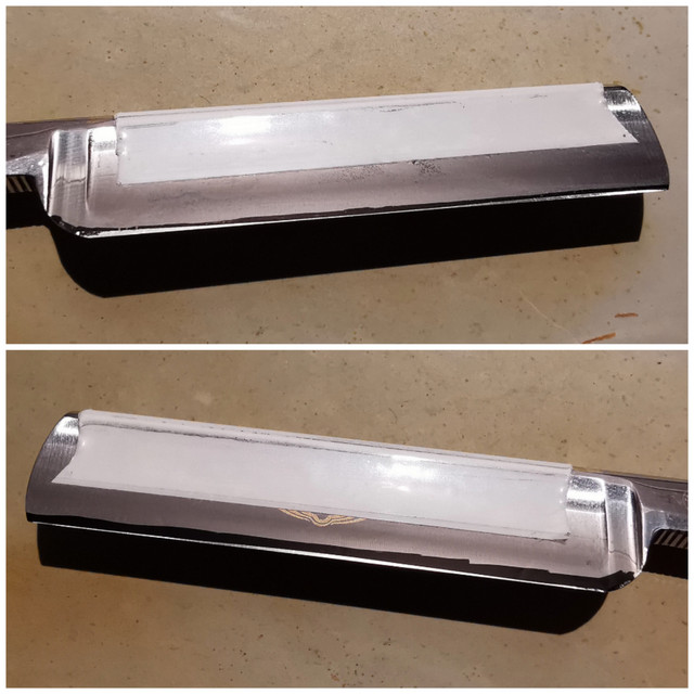 Ich denke, anfangs ist das größte Problem der Neulinge, dass die Ausführung nicht einwandfrei ist. Seit ich nur noch Einhändig schärfe mit Swaying X Strokes. So trifft man immer die komplette Länge der Schneide.