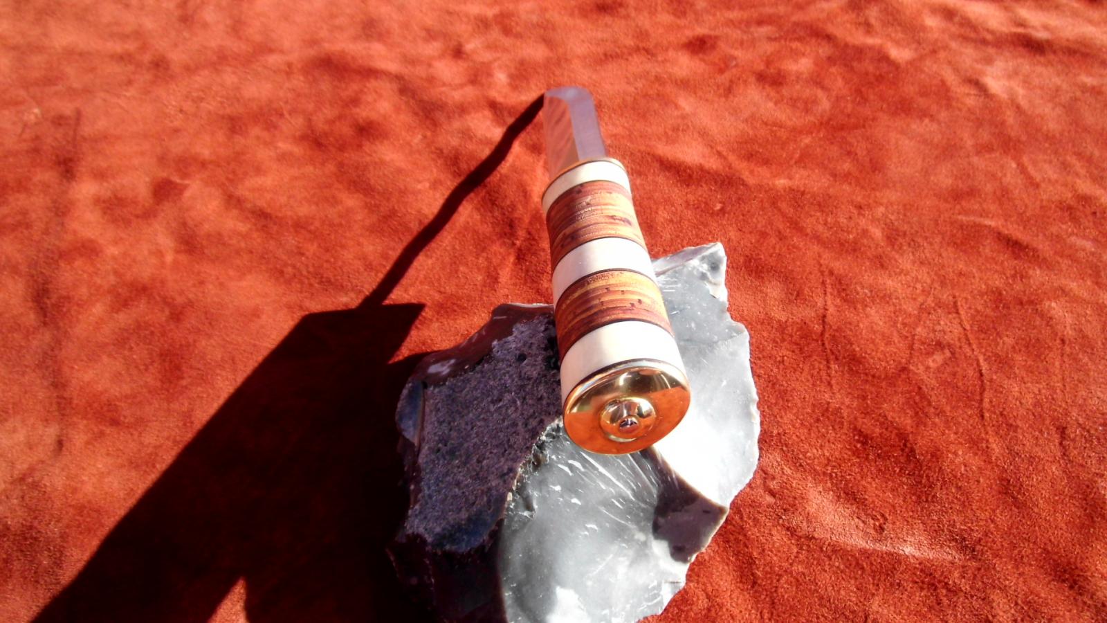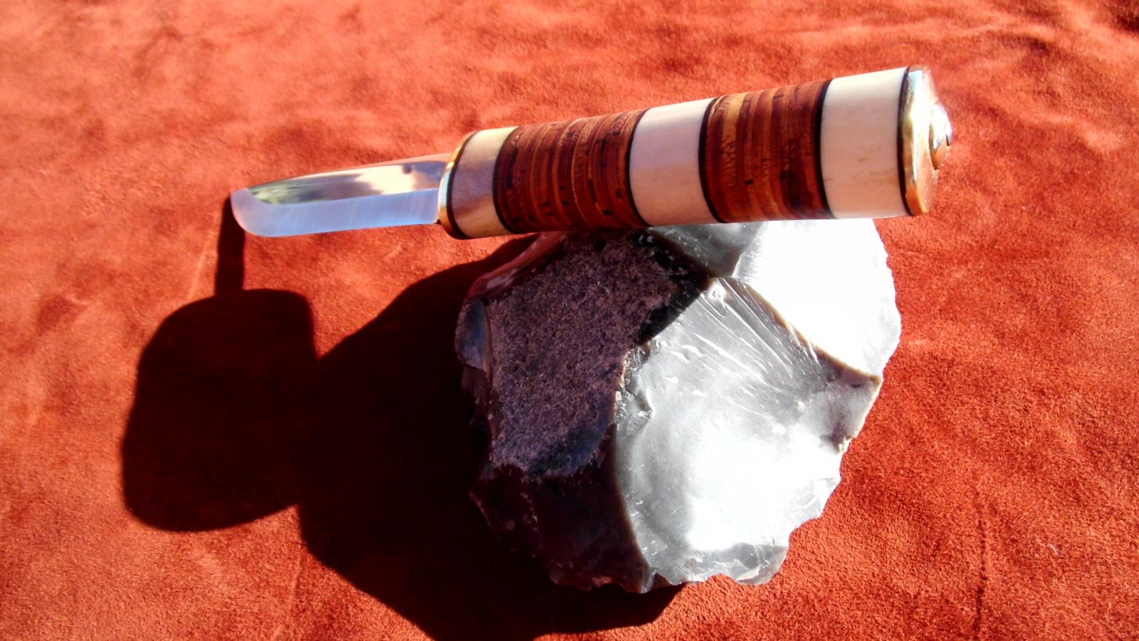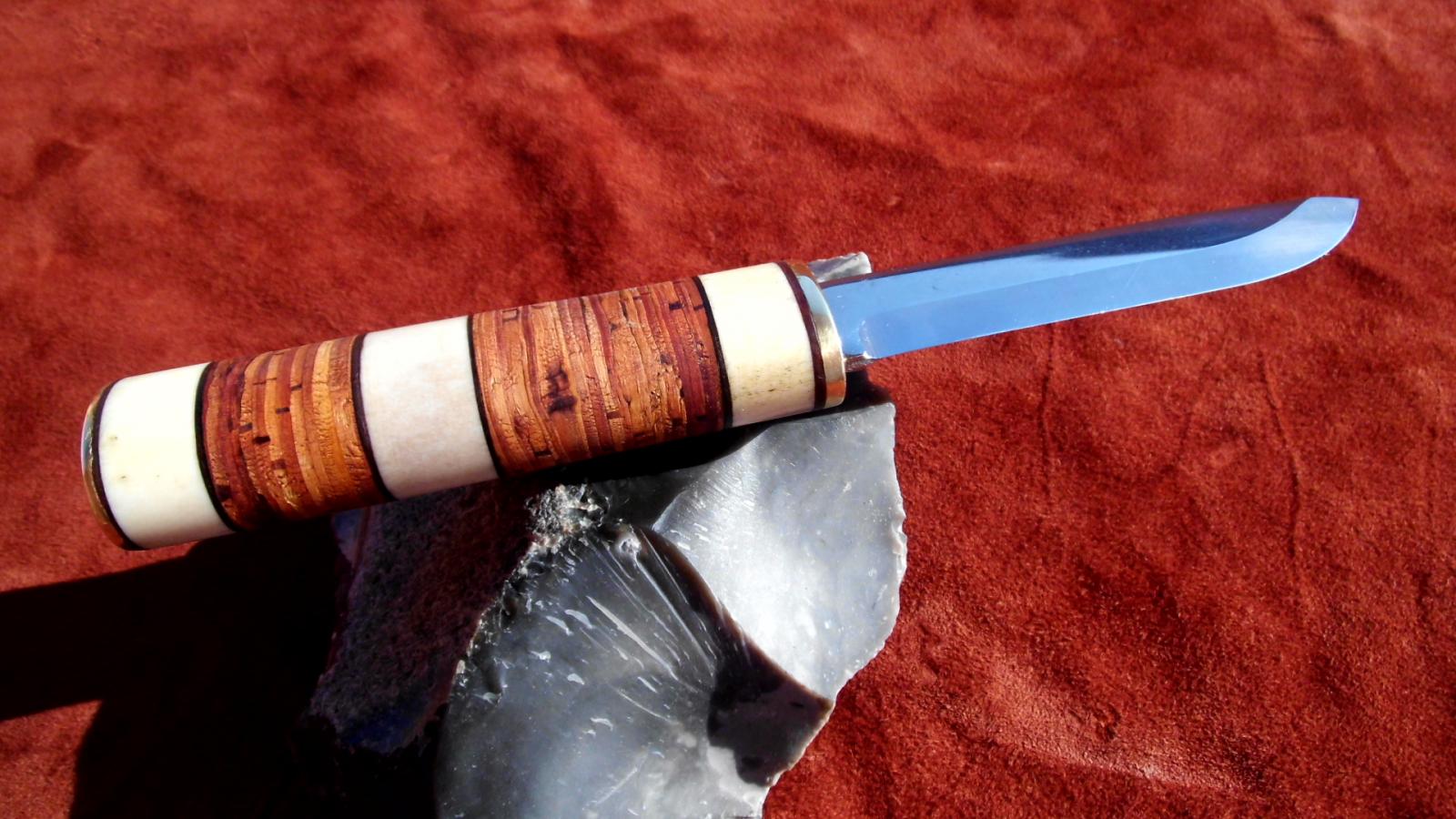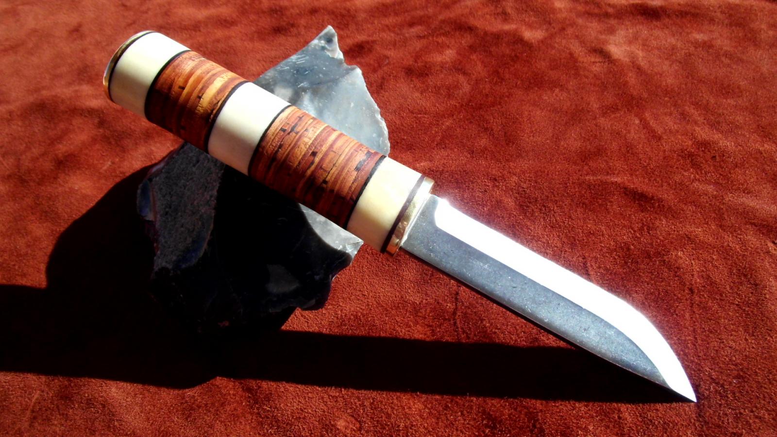 Eine rostfreie 10cm Klinge von Karesuando (danke an NORDISCHES HANDWERK) hat sich mit Birkenrinde und Rentierhorn und etwas Messing verbunden.