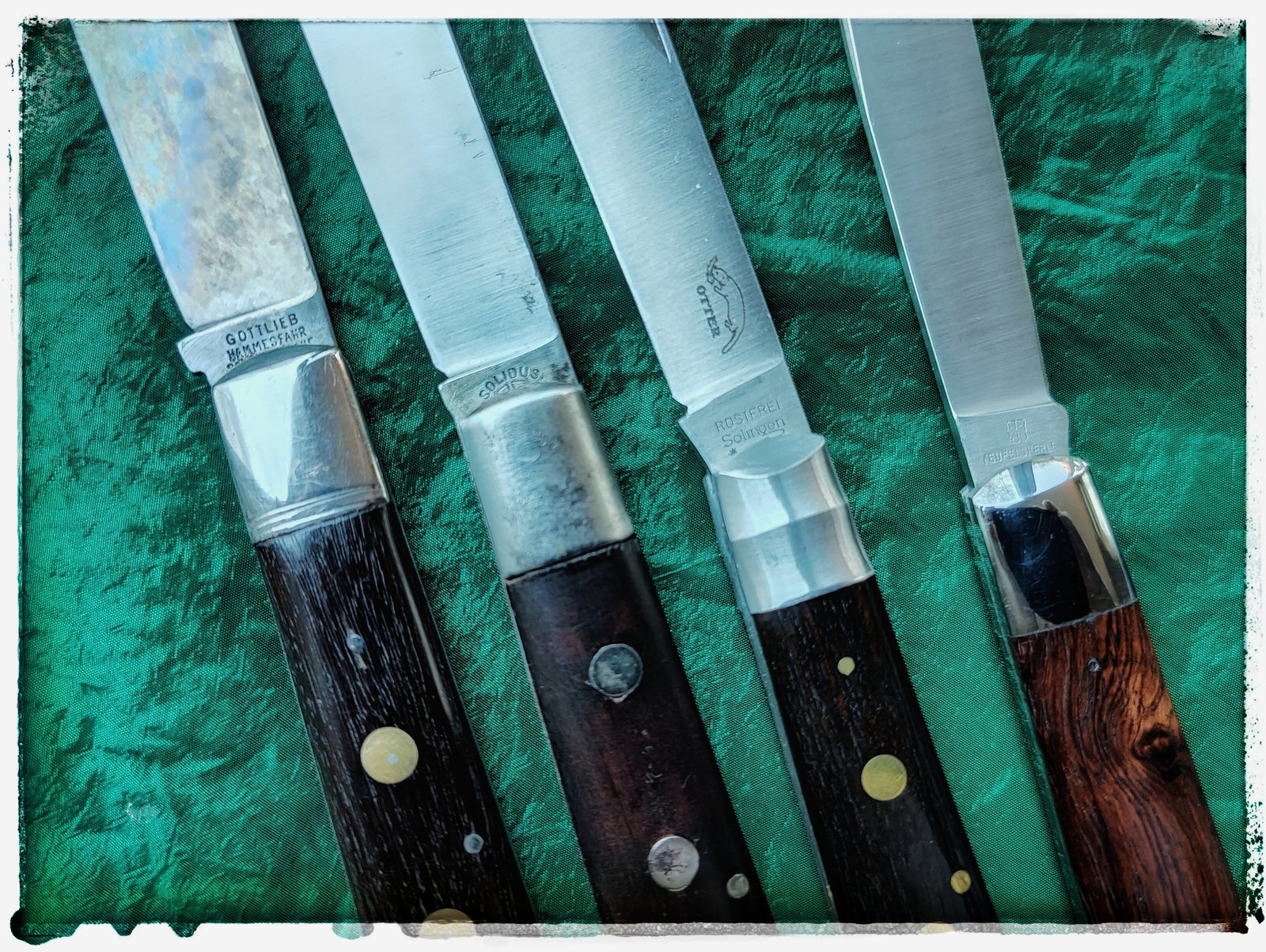 Ich persönlich bin einmal mehr erstaunt über die Vielfalt an Klingenformen gegenüber den heutigen mittelspitzen Klingen. Die Zeitreise scheint also von Sheffield über Solingen nach Böhmen zu gehen. Wobei Frankreich ganz sicher auch dabei war.