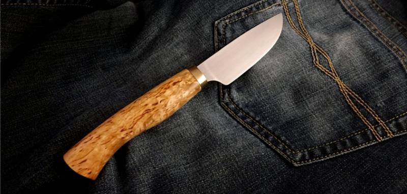 dieses Messer ist im Kundenauftrag entstanden. Die Klinge sollte nicht länger als 11cm, dafür aber nagelgängig, dünn ausgeschliffen sein. Die Materialien fürs Messer sind Maserbirke, Messing und 1.2510er Stahl.