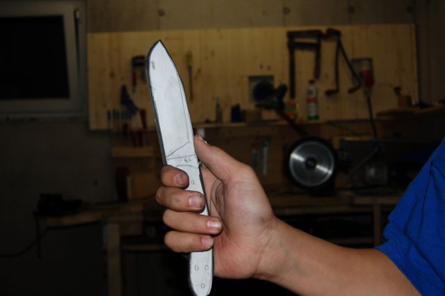 Das Messer gefällt mir eigentlich ganz gut! Der Anschliff hat so ein bisschen was vom Sebenza. Nur der Griff scheint ein bisschen lang...oder du musst dir größere Hände wachsen lassen :p