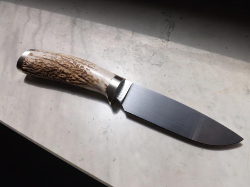 es ist sogar eine doppelte Premiere. Ich wollte zwar schon lange einen Hirschling für meine Lederhose machen, habs aber immer wieder aufgeschoben. Dieser ist wieder nicht für mich, sondern für einen Freund, der mich darum gebeten hat. Als es um den Stahl ging meinte er: "ist mir wurscht, hauptsache rostfrei". ROSTFREI? Na gut, dachte ich. Versuchen wir es mal. Heraus gekommen ist dabei dieses Teil: