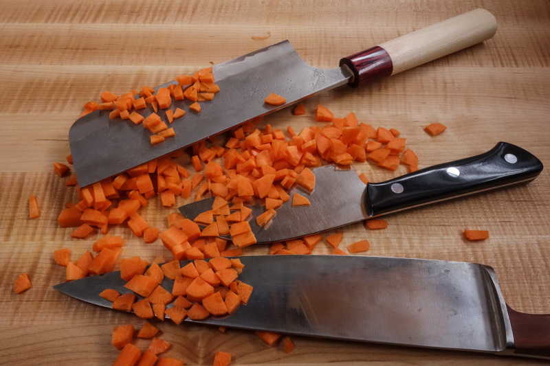 Eine nicht unwesentliche Frage ist, worin denn eigentlich der Unterschied zwischen Aogami und Shirogami und ihren Versionen besteht. Wer interessiert ist, liest hier weiter, sonst beim „Möhren-Contest“: