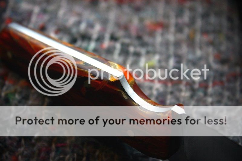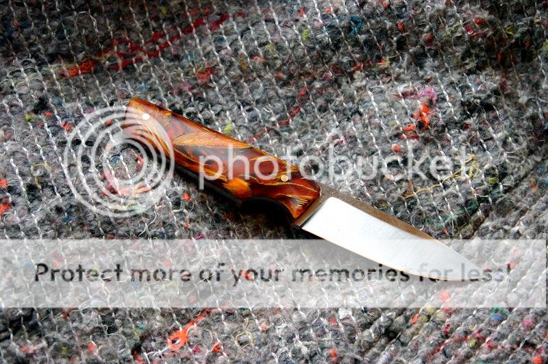 Was vielleicht noch erwähnenswert ist: Das Messerchen ist extrem dünn ausgeschliffen. Hat sich so ergeben.. Der Bandschleifer und ich waren nicht immer einer Meinung:argw: ;) ...und vom finishen wird die Klinge eben auch nicht mehr dicker. Der Griff ist übrigens (noch) nicht poliert, nur von Hand bis auf 1000er Korn geschliffen.