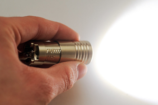 Das Besondere der Raw ist eindeutig die Größe: 250 Lumen mit einer XM-L, und das bei einer Gehäuselänge von nur 50 Millimetern. Der Durchmesser am Kopf beträgt lediglich 18 Millimeter, das Gewicht der NS-Version wird mit 40g angegeben. Die Ti-Version soll nur 25 Gramm wiegen.