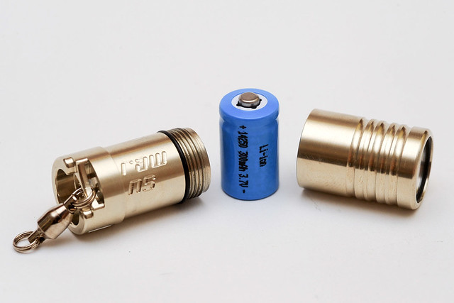 Der geringen Gehäusegröße ist es geschuldet, dass kein normaler kleiner Akku (z.B. 16340) verwendet werden kann, stattdessen findet in der Raw ein Lithium-Ionen-Akku 14250 Platz. Ein Stück wird mitgeliefert, jeder weitere Akku kostet 5 GBP Aufpreis.