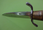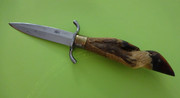 Seit einigen Jahren liegt dieser Jagdnicker/-dolch schon in meiner Sammlung böhmischer Messer, richtig warm geworden bin ich damit nicht. Einer kräftigen, gewichtigen Klinge steht ein leichter, gar hohler Griff gegenüber. Optisch reizvoll, aber ob er für die Jagd tauglich war? Zweifellos alles Original, denn ich fand ein gleiches Modell im Katalog eines anderen böhmischen Herstellers.