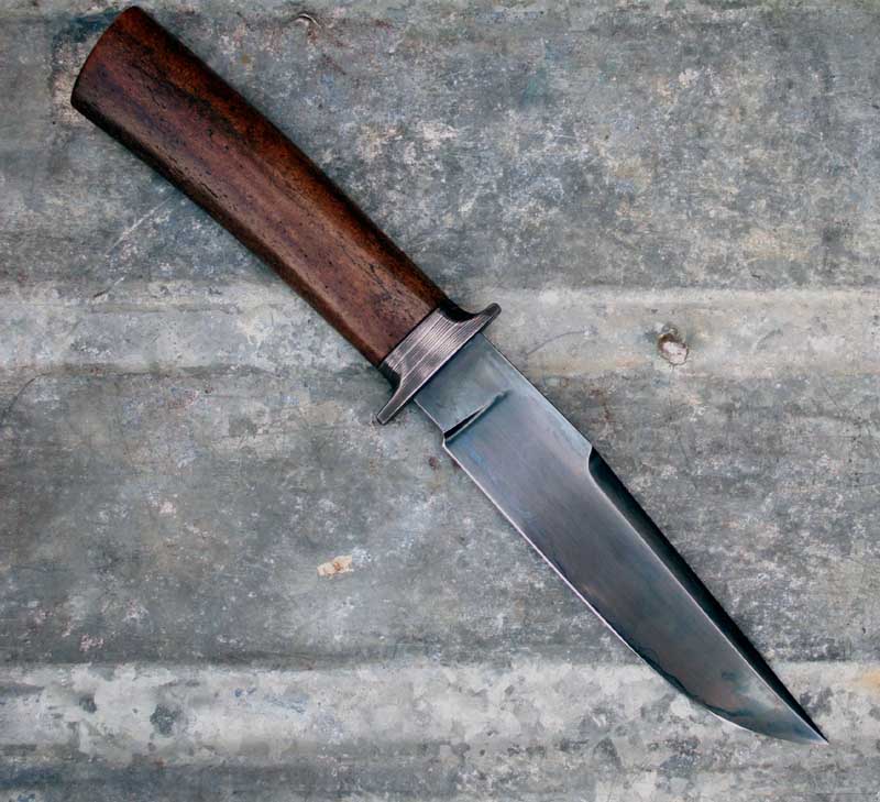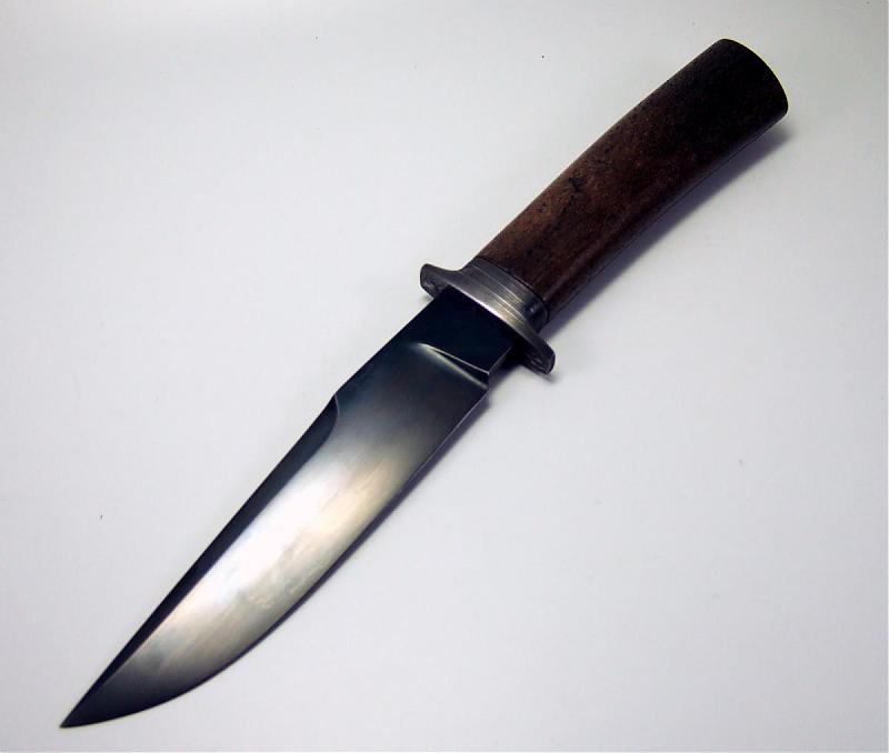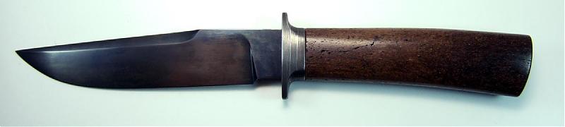 Klinge geschmiedet aus 1.2519, leicht ballig ausgeschliffen und brüniert; 135mm lang, 4mm stark