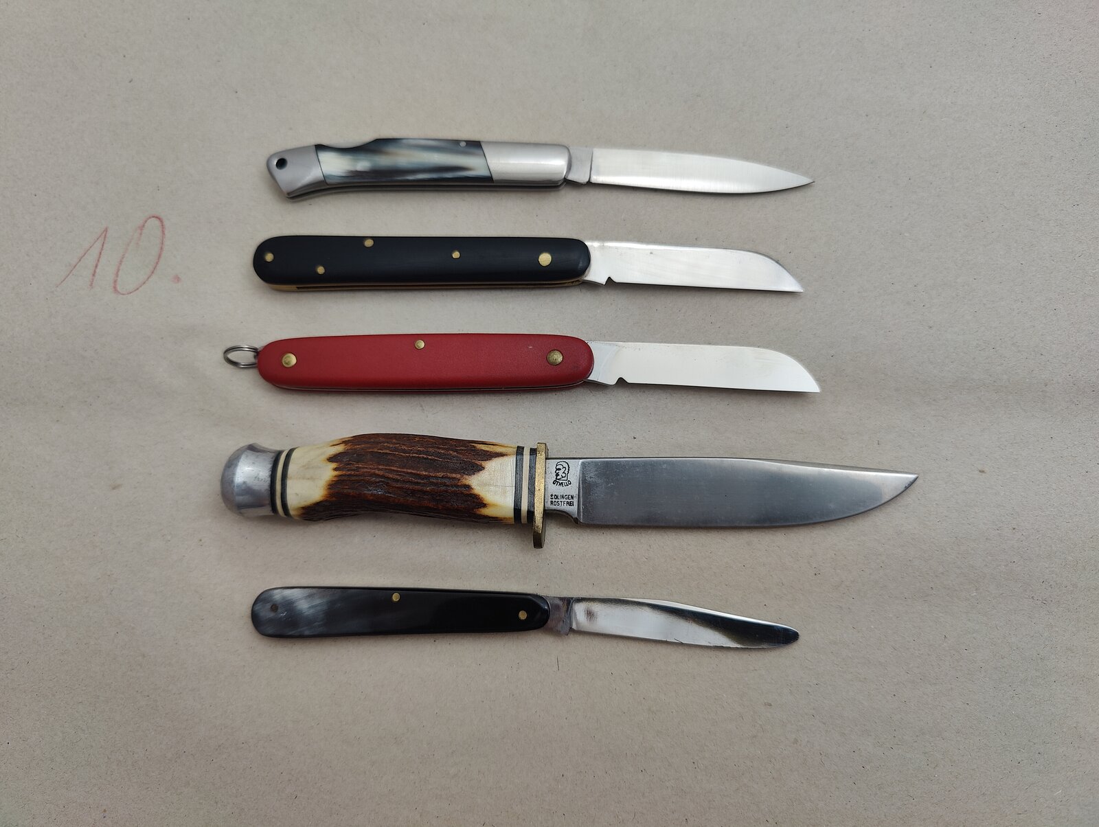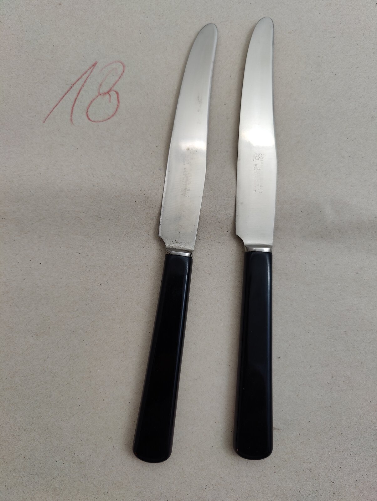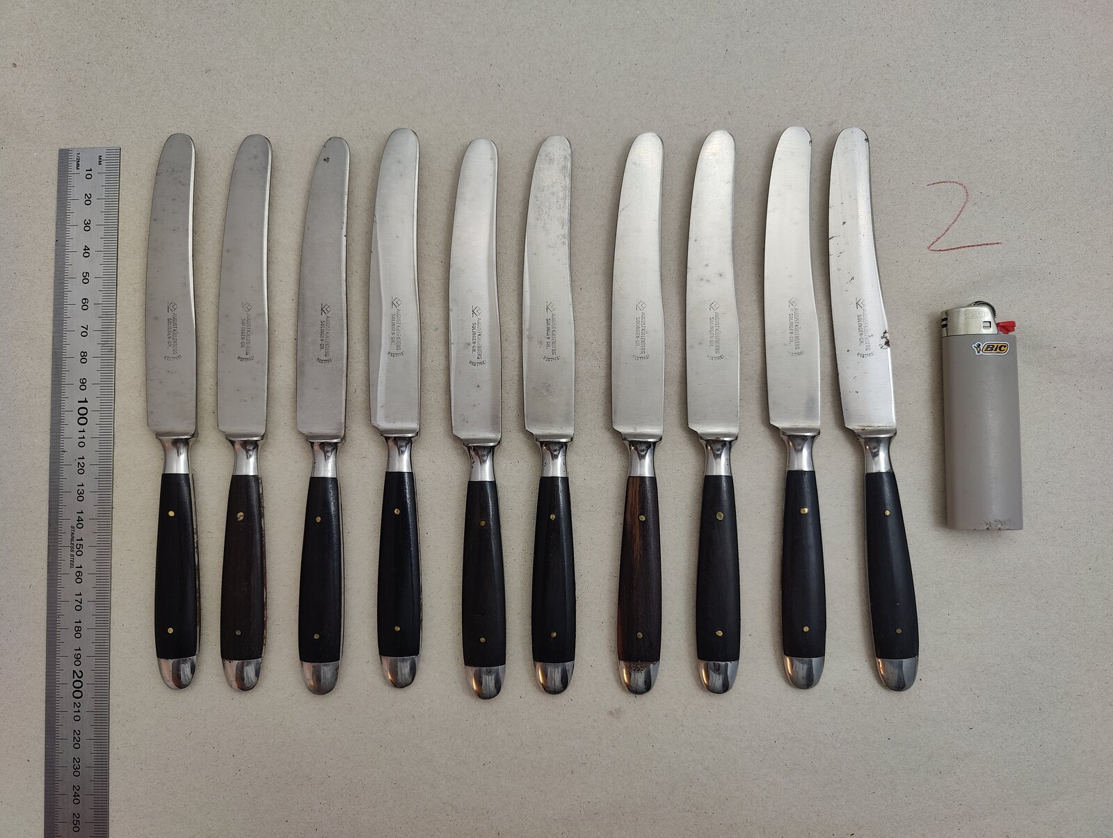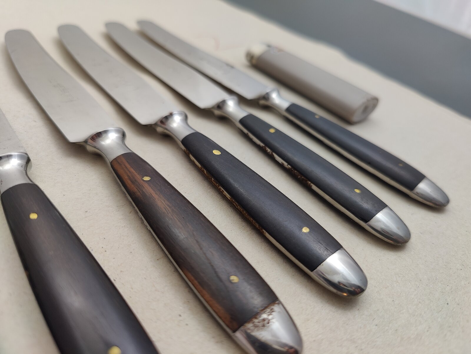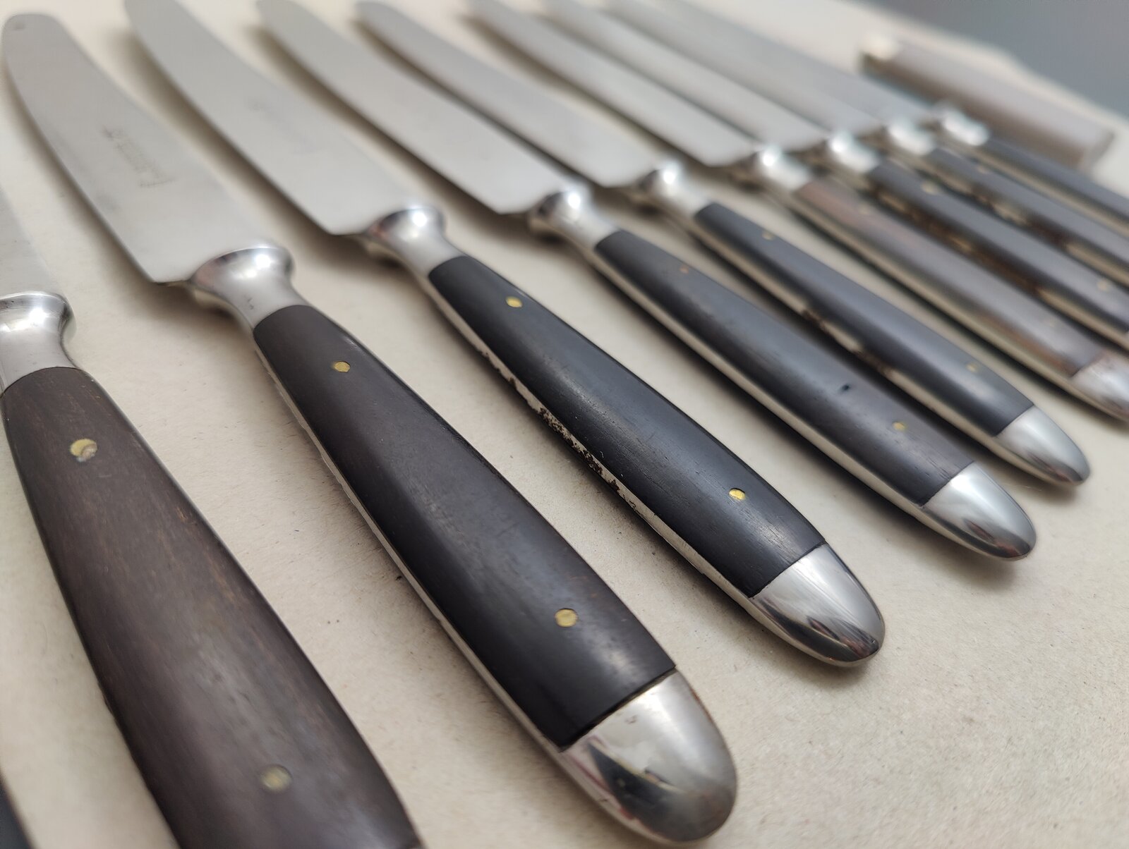 10 St. Besteckmesser Küllenberg, zwar rostfrei aber an der einen oder anderen Angel doch leichte Korrosion, kann man leicht entfernen - Ebenholz