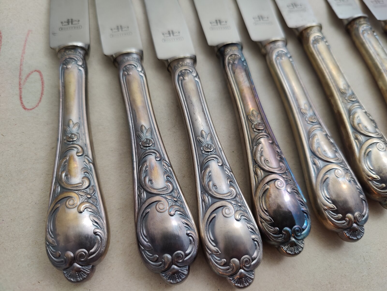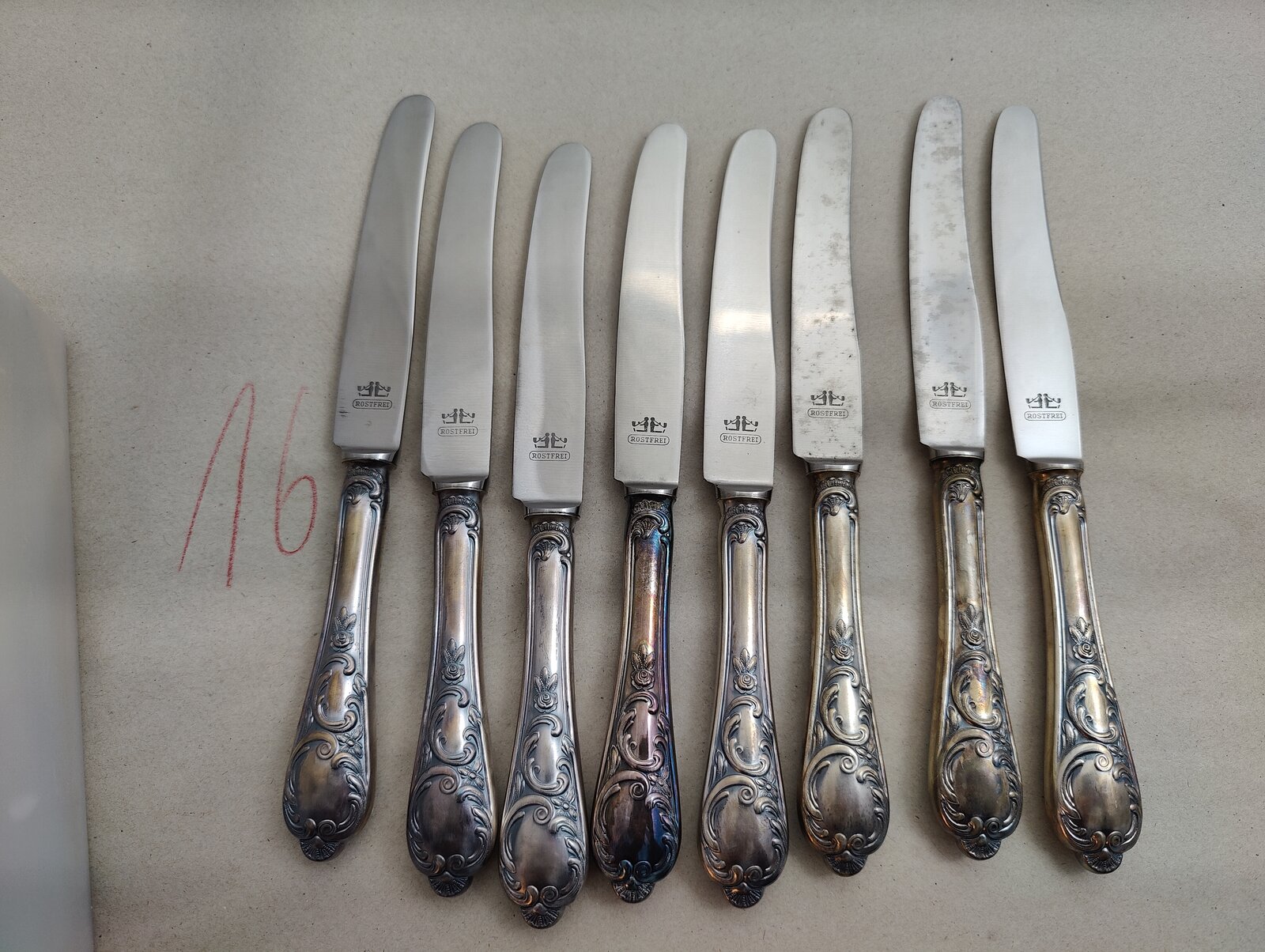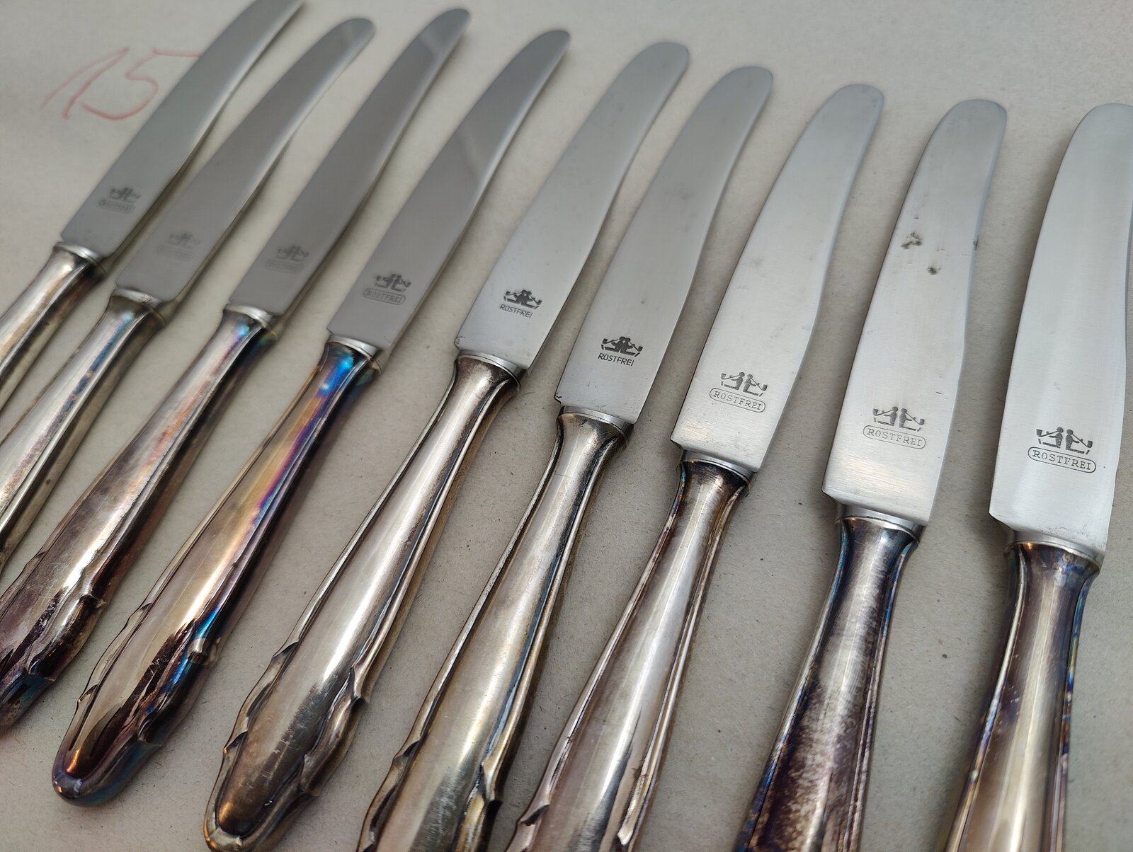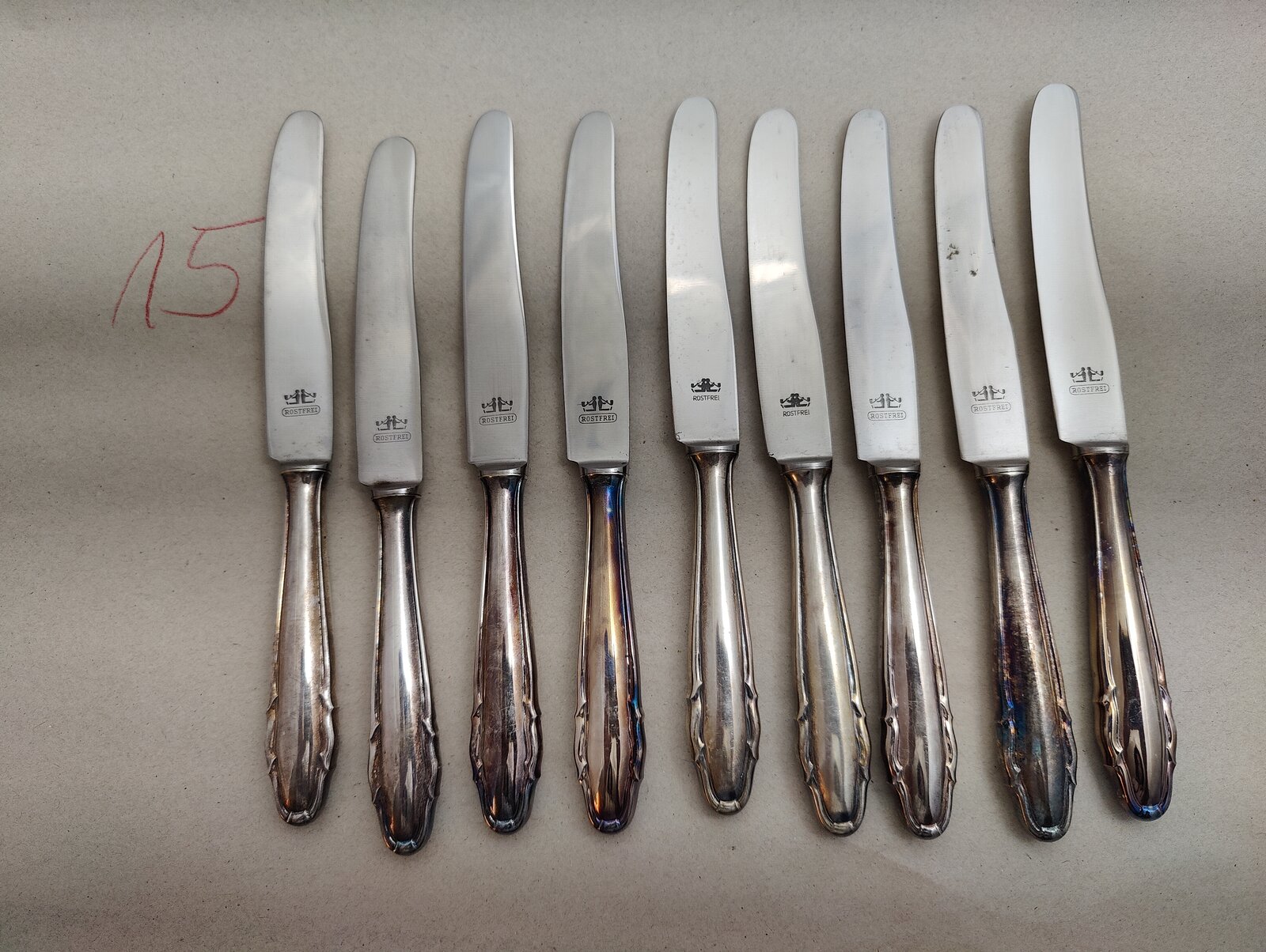 9 St. versilberte ( 90er Auflage) Besteckmesser, Hersteller mir unbekannt