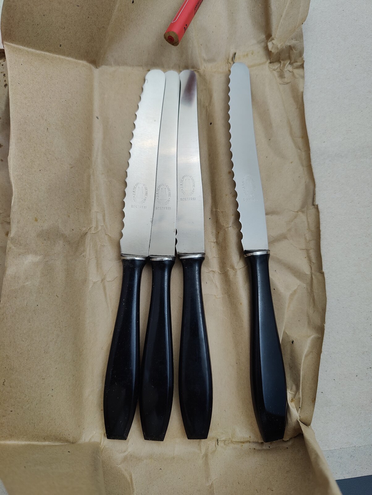 4 Stück Steakmesser Anton Wingen rostfrei. Sehr hybsch finde ich.
