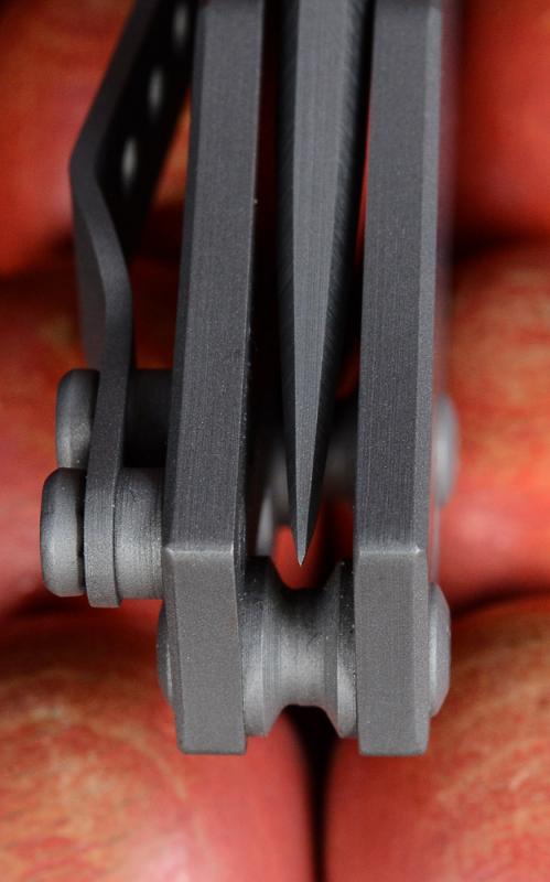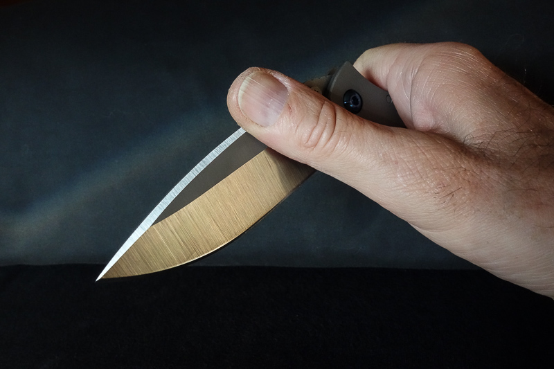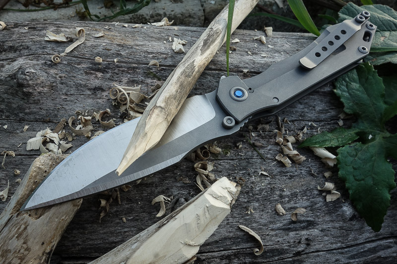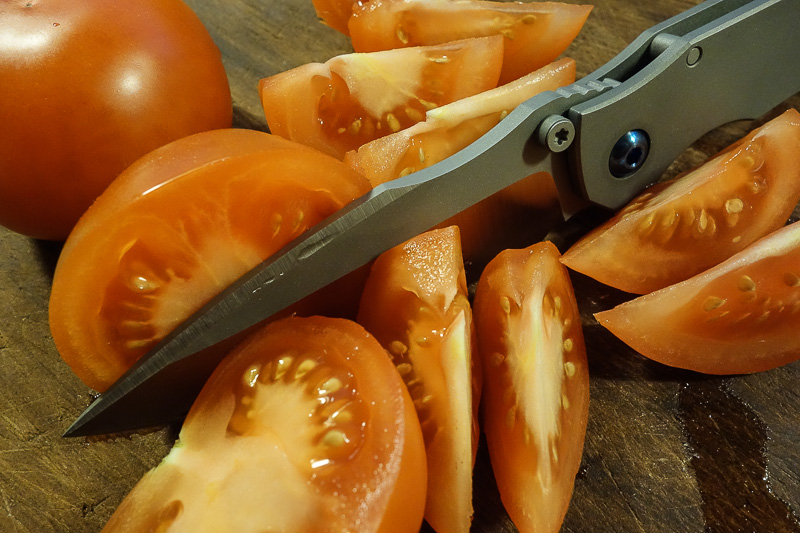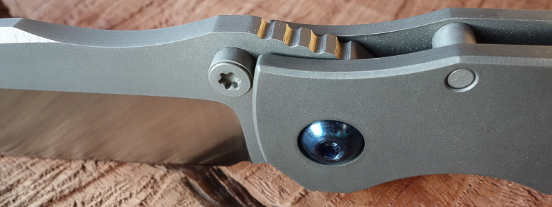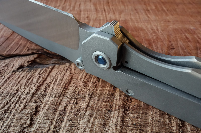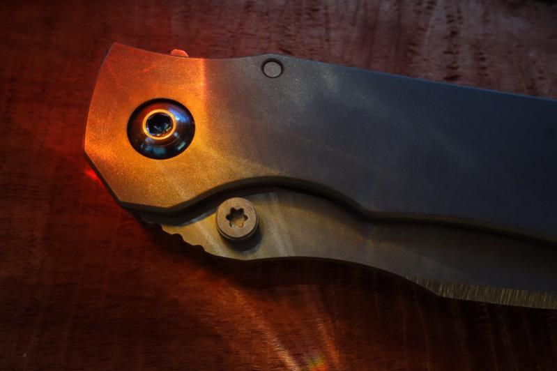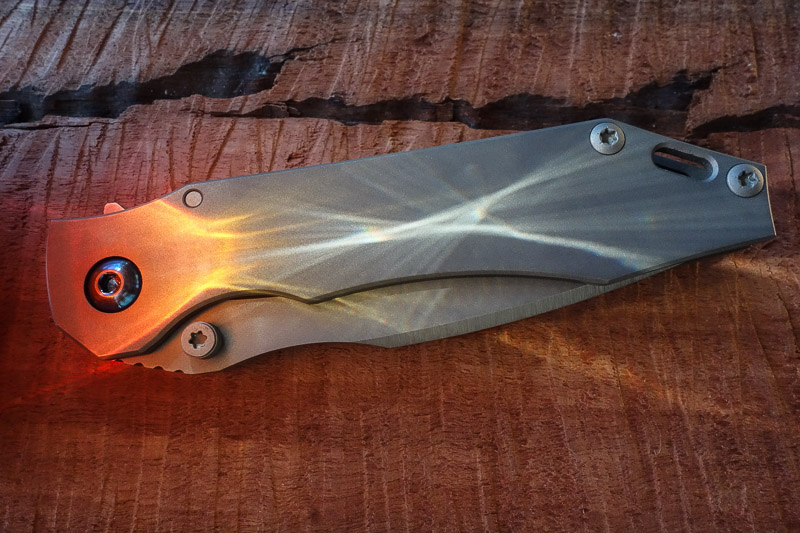 Nicht so in der Hand. Den Werkstoff Titan haben wir mittlerweile der angenehmen Haptik wegen schon an diversen Messern schätzen gelernt. In der vorliegenden - gestrahlten - Variante fühlt sich der SGF an wie ein Sebenza. Und ist genauso sensibel. Die ersten Gebrauchsspuren hatte er schon nach den ersten Fotos. Zeiss-Objektive zeichnen halt sehr scharf