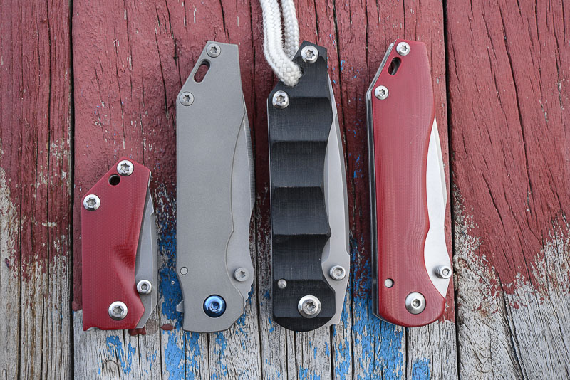 Im Vergleich zu unseren beiden anderen Flippern, dem Brad Southard und dem ZT 560, fällt der schon erwähnte erheblich kürzere Knubbel auf, der das SGF auch im Vergleich zu diesen Foldern deutlich schlanker erscheinen läßt. Man sieht ihm den Flipper auf Anhieb gar nicht an. Steht er auf einer geraden Fläche, bilden Unterkante Griff und Unterkante Flipperhebel eine Linie. Das ist schon klasse gemacht