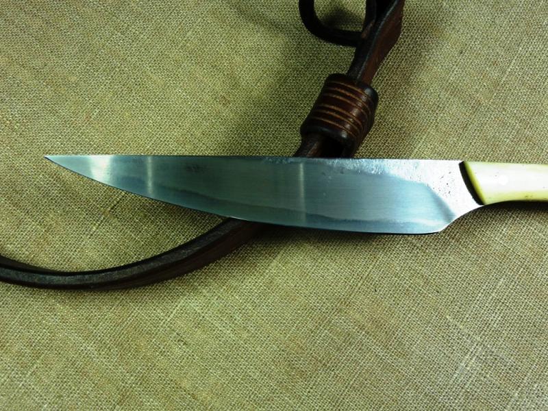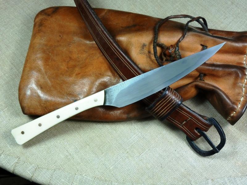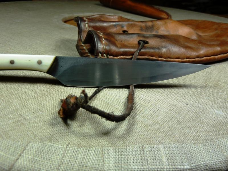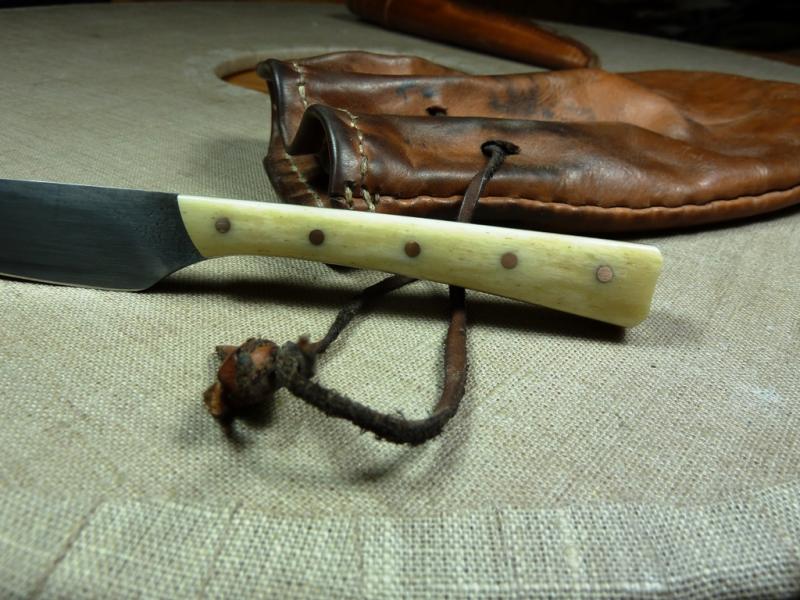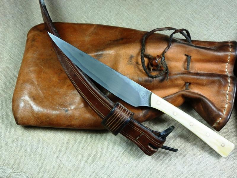 Außerdem kostete so ein Messer früher schon sein gutes Geld und für eine Lederscheide mußte man damals sehr viel investieren oder diese selbst anfertigen. Die ersten waren aus Stoff und später ging man über diese aus Holz zu fertigen... Danach erst kam Leder und Kaufleute aus dem Osten brachten die ersten lederummantelte Metallscheiden mit. Das einfache Volk aber trug die Messer im Beutel zusammen mit dem Feuerschläger und etwas Zunder oder mit einem Pfriem zu Essen.
