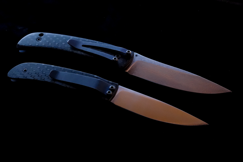 „Leo 3“ mit seiner fabelhaften Balbach-Damast-Klinge, die uns immer wieder mit ihrer Standfestigkeit erfreut und „Little Wing“ mit der kleinen, schlanken, aber nicht minder beeindruckenden aus SB1.