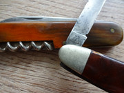 Klinge, nicht zum Feststellen, ca. 8 cm lang, (Spleiß-)Dorn gerade, ca. 8 cm lang, feststellbar, Drehpunkte für Klinge und Dorn liegen an entgegengestzten Enden, der Feststell-(bzw. Löse-)bügel dient gleichzeitig als Trageöse, sehr stabile Verarbeitung, Außenkonturen abgerundet, Gesamtlänge zusammengeklappt ca. 10 cm. An eine Herstellermarke auf der Klinge kann ich mich nicht erinnern, ebensowenig an die genauen Abmessungen, das Messer ist leider in den WENDEwirren aus dem Bordwerkzeug entWENDEt worden.