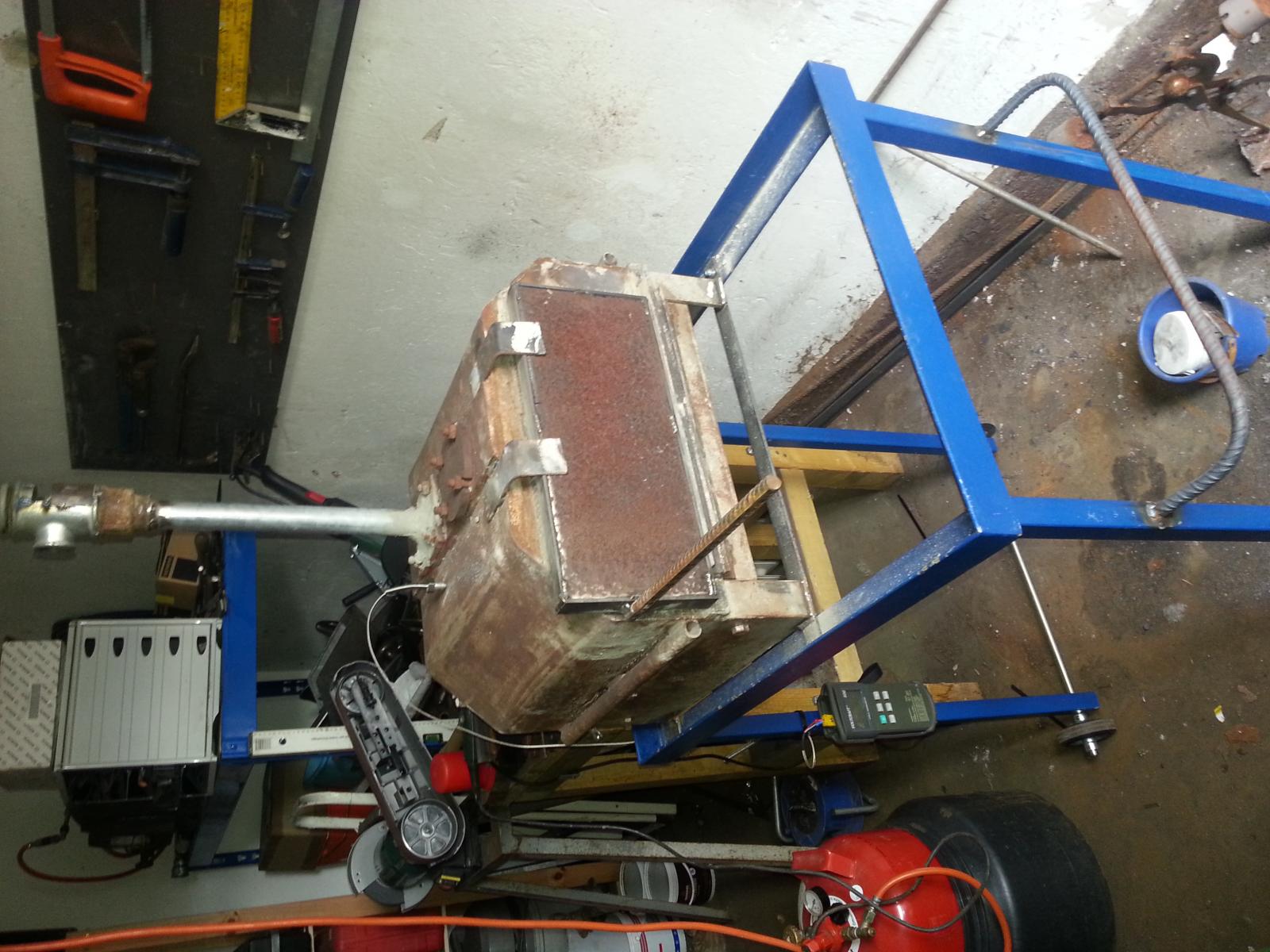 Ich feure mit 2 Eigenbau-Gebläsebrennern mit 2,5, bzw.3 mm Düsen und Altgebläsen aus Heizanlagen.