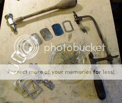 Das Teil ist komplett Handgeklöppelt, nix CNC, Fräse oder Gelaserte Teile sondern die Einzelnen Lagen wurden ganz traditionell in Low-Tec Handarbeit mit der Goldschmiedesäge ausgesägt, gefeilt, poliert und dann vernietet. Titan lässt sich leider nicht ganz so Einfach verarbeiten wie ich das gerne hätte, Sägeblattverschleiß kann man nur sagen "hoch bis sehr hoch"und billige Importware taugt dazu nicht - da sind die teuersten Tatsächlich mal die besten. Knapp 30 Sägeblätter und insg. nen paar Stunden hats schon gedauert...