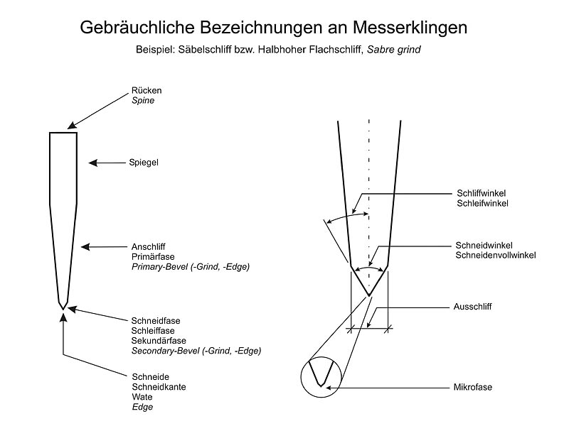 Sekundärfase genannt und meisten der Millimeter hohe geschliffene Bereich hinter der Schneidkante). Westliche Messer haben oft 0,4mm Stärke oder mehr. Das sorgt dafür, dass die Schneide sehr robust ist und es eher selten zu Ausbrüchen kommt. Aber die Robustheit erkauft man sich mit dem Nachteil, dass man beim Schneiden von hartem Schnittgut wie z.B. einer Karotte das Schnittgut eher spaltet als schneidet.