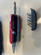 Some years I purchased this Wenger SAK from a shop understanding that it was a rare model from around the year 2000. I don't think many of these were made but I use it daily at my job doing maintenance work. It isn't a perfect tool with the lock for the pliers slipping sometimes allowing it to open. I have purchased bits I need for it such as security Torx from PB Swisstools on an as needed basis. Other tools such as Leatherman use a bit that isn't so common.