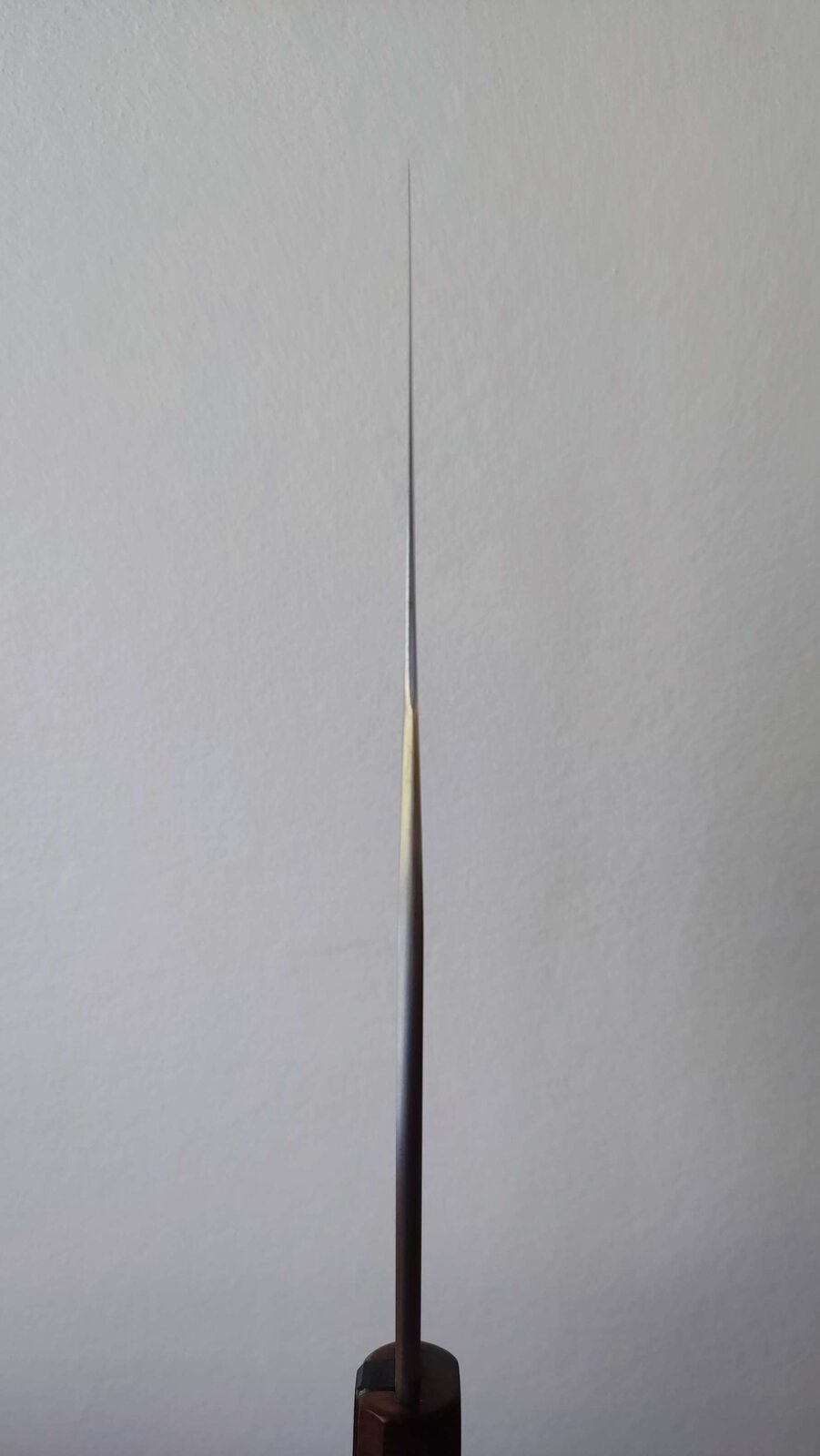 Wenn man das Okubo über den für diesen Hersteller üblichen Weg bestellt, wird der Inhaber des Shops auf Nachfrage aber sicherlich besonderen Wert darauf legen, dass die Klinge gerade ist. Da habe ich gar keine Zweifel - im Bereich japanischer Messer gibt es so viele tolle Händler mit hervorragendem Service, aber dieser ist nochmal ein Level drüber.