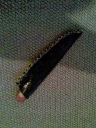 von Zingzong2005, Gesamtlänge ca. 5cm, und mittlerweile rattenscharf. Die Kydexscheide ist von mir gemacht
