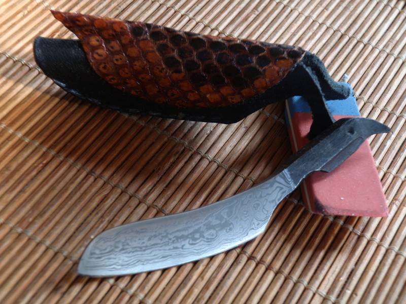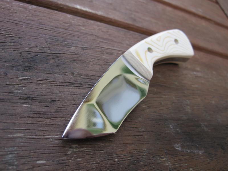 Klinge Uddeholm 1770, auf ca 58 HRC angelassen, damit die Politur nicht so leidet.