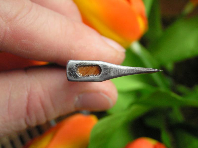Die Öse ist aus 925er Silber, die hatte ich eine Goldschmiedemeisterin anbringen lassen. Sie hat leider das dünne Holz rund ums Loch zum Bersten gebracht und meinte dann nur: "Tja, schade, aber was baust du das auch so klein..." ...Und das von einer Goldschmiedemeisterin...