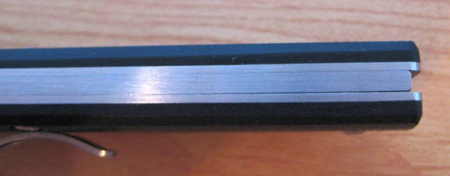 Die Klinge hat eine Länge von 9cm aus D2 und beim Öffnen fällt auf, dass es sich um eien "Quarter-stop" handlet (3 Zwischenpositionen bis zum vollständigen Aufklappen). Die Rückenfeder ist recht knackig, und ein einhändisches Öffnen meiner Meinung nach nicht möglich. Die Harware ist mit Imbusschrauben verschraubt, und ermöglicht somit ein komplettes Zerlegen (hab das allerdings nicht ausprobiert).
